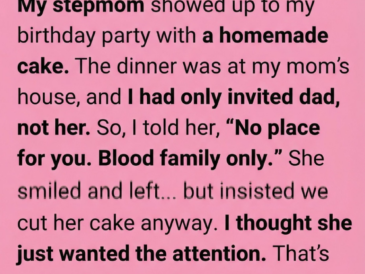 My stepmother arrived at my birthday dinner carrying a homemade cake I hadn’t asked for. …