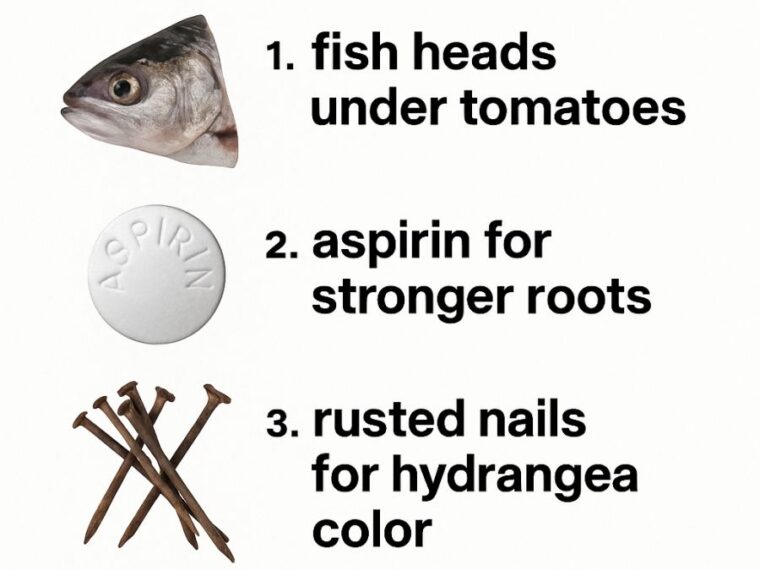 Rusted nails can be buried near hydrangeas to alter the soil’s pH and influence the color of the blooms. The iron from the rust interacts with the soil, making it more acidic, which can turn hydrangea flowers a vibrant blue. Bury a few rusted nails about 6 inches deep around the base of the plant.