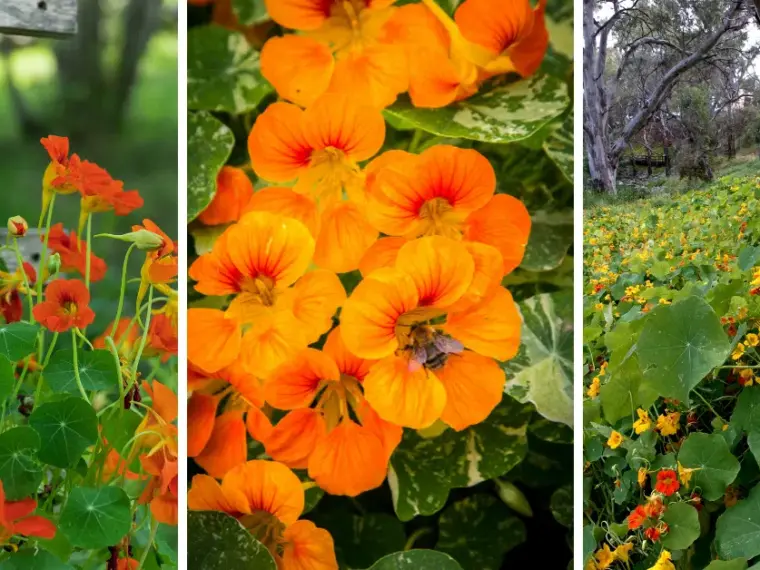 Low-growing nasturtium varieties spread quickly and cover bare soil, preventing erosion and suppressing weeds.
