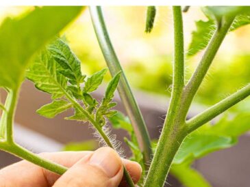 • Remove the lower leaves so only a few sets remain at the top.