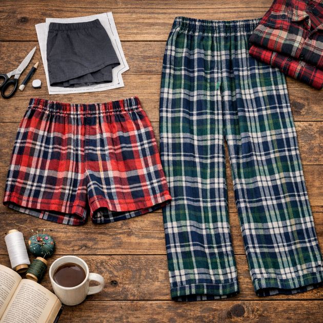 Comfortable sleepwear is a perfect use for old flannel shirts. To make sleep shorts, use an existing pair of shorts as a template. Fold the flannel and the shorts in half, trace around the shorts with a 0.5-inch seam allowance, and cut out the fabric. Sew the pieces together, add an elastic waistband, and hem the bottom edges. For lounge pants, extend the length by using a pair of pants as a template. The softness of flannel makes these garments perfect for relaxing at home.