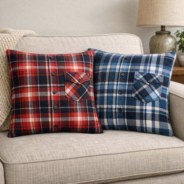 1. Turn Old Flannels Into Cozy Throw Pillows