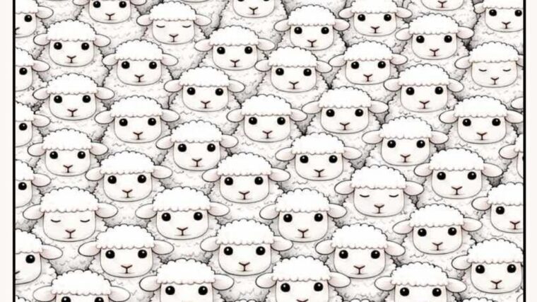 At first glance, the image looks simple: a field packed with adorable cartoon sheep. But …