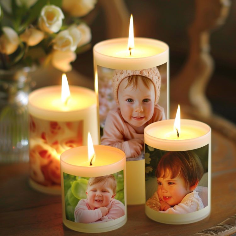 Add a personal touch to your decor or create a thoughtful gift by transferring photos onto candles. Print your photo on tissue paper and cut it out. Wrap the tissue paper around a white candle and cover it with wax paper. Use a heat gun or hair dryer to heat the area until the tissue paper image is absorbed into the candle. This creates a lovely glowing effect when the candle is lit.