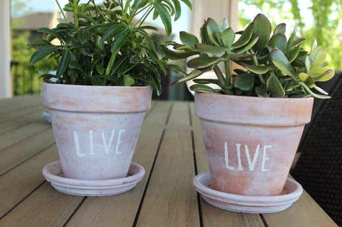 The project below by Love Our Real Life proves that adding a simple, stylish touch can completely change the vibe and appearance of a boring terracotta pot. Use chalk paint to achieve that white washed finish.