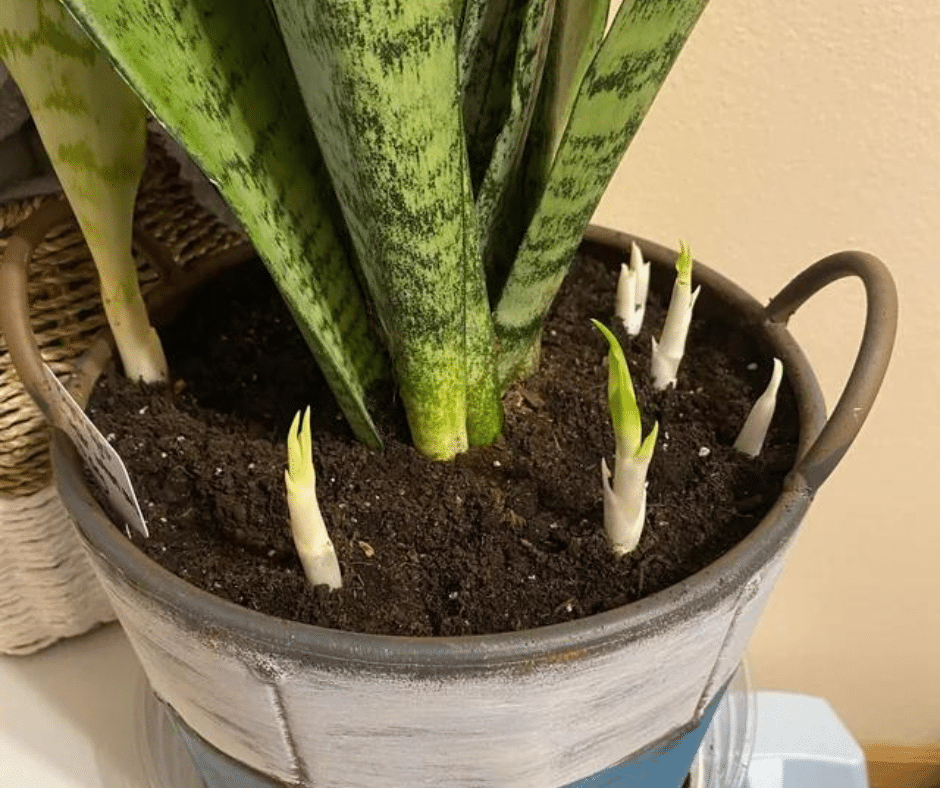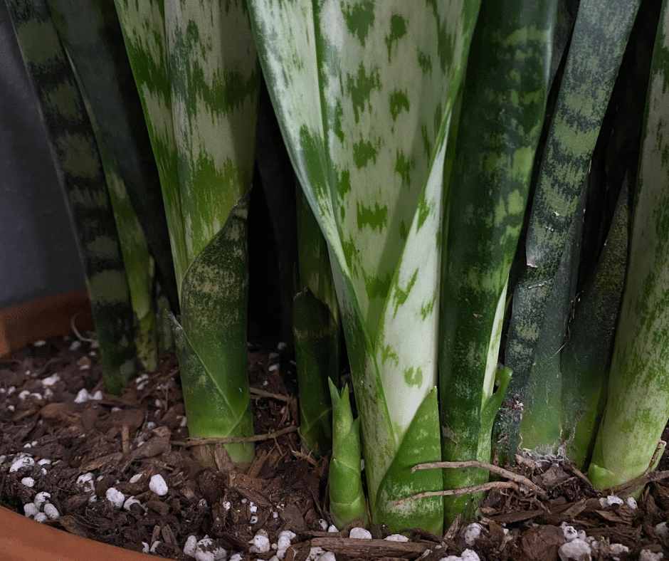 Snake plants prefer to be slightly root-bound, which signals to the plant that it’s time to produce offshoots to spread.
