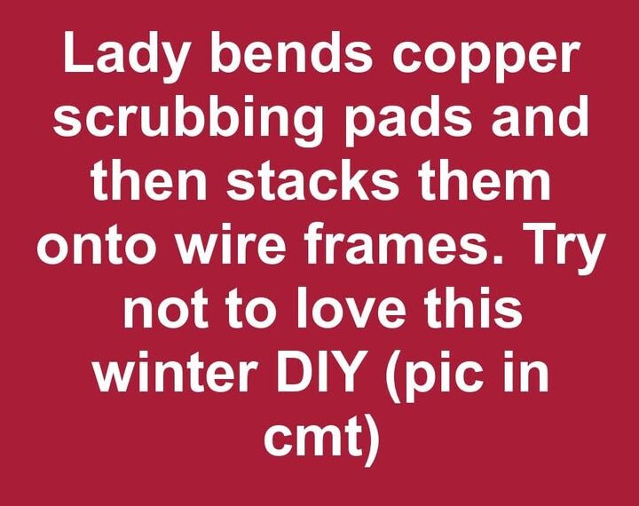 Lady bends copper scrubbing pads and then stacks them onto wire frames. Try not to love this winter DIY