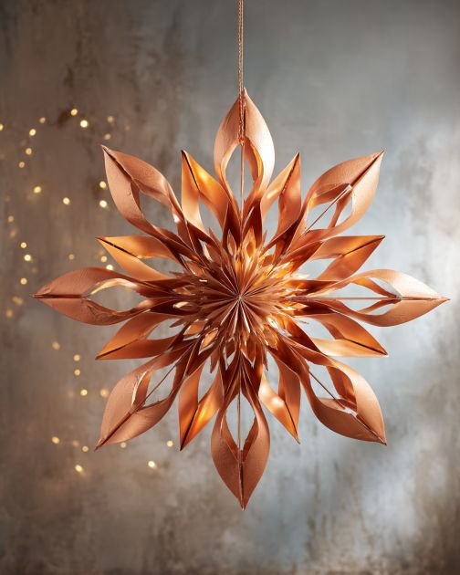 These rustic copper snowflakes can be hung on walls or placed on mantels to add a touch of winter charm to your home. Their metallic sheen pairs beautifully with natural materials like wood and stone, making them perfect for rustic or farmhouse-style interiors. Consider grouping several snowflakes together in varying sizes for an eye-catching display, or use them as unique ornaments on a Christmas tree for a cohesive theme.