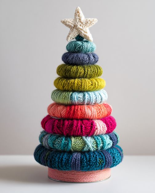 The DIY stacked can yarn tree can be styled as a centerpiece on a dining table, an accent on a mantelpiece, or a whimsical addition to a child’s room. Pair it with complementary colors and textures for a cohesive look. Consider using it alongside other natural elements like wooden bowls, plants, or woven textiles to create a cozy and inviting atmosphere. Its versatile design allows it to blend seamlessly with various interior styles, from rustic farmhouse to modern minimalist.
