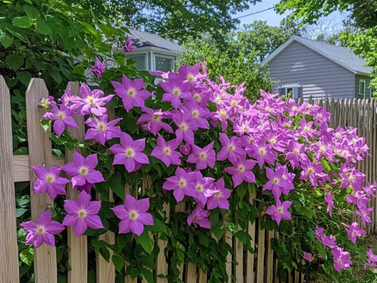Ensure the fence is free from peeling paint or wood treatments that could harm the plant. If necessary, sand and repaint the fence with a plant-safe finish before planting your clematis.