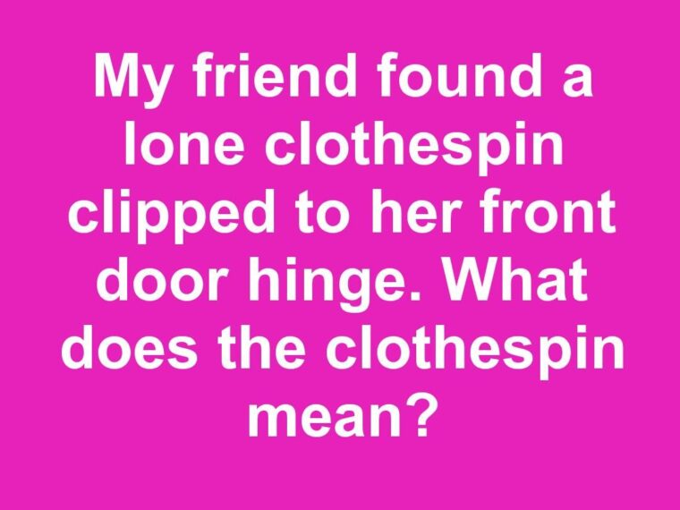 My friend found a lone clothespin clipped to her front door hinge. What does the clothespin mean?