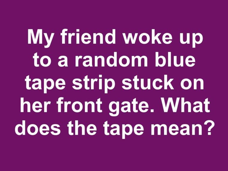 My friend woke up to a random blue tape strip stuck on her front gate. What does the tape mean?