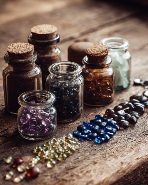Carefully add the cracked glass beads to each jar.