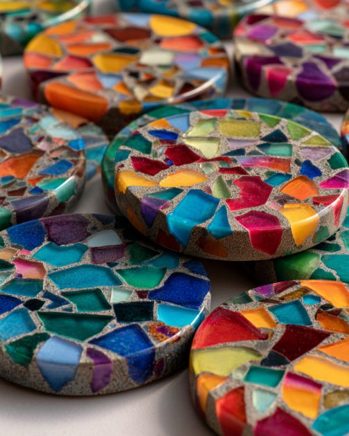 These coasters can be styled in various ways to complement your home interior. Place them on a wooden coffee table to contrast the natural textures, or use them as a pop of color against a minimalist, monochrome setting. Consider grouping them in sets of four or six for a cohesive look, or mix and match different shapes and colors for a more eclectic feel. They can also be displayed in a decorative bowl when not in use, serving as both functional and ornamental pieces.