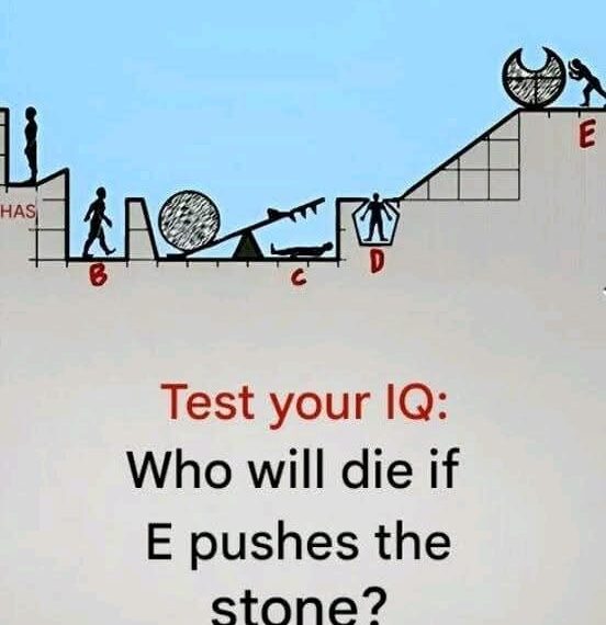 Today’s puzzle requires a thorough analysis and a basic understanding of physics. However, even if you are not an expert in physics, a good observational skill might be enough to solve the puzzle. The puzzle image shows five people, labeled A through E. E is about to push a rock down a slope. The rock is spaced far enough apart for a head to fit inside.