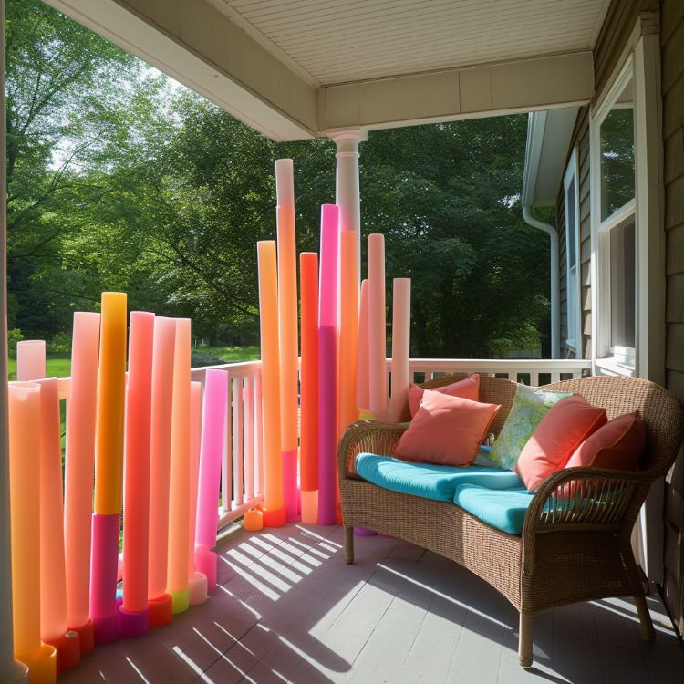 Cut the noodles into various lengths and use them to create a seating area on your porch. This is a great way to create a comfortable and inviting space for you and your guests to relax and enjoy the outdoors. You can also use the noodles to create a backrest for your seating area.