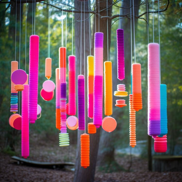 Craft a set of unique wind chimes using pool noodles and a few other supplies. Cut pool noodles into varying lengths and attach them vertically to a wooden ring or hoop. Hang decorative bells or chimes at the bottom of each noodle. Suspend the entire structure from your porch ceiling to enjoy the soothing sounds as the breeze passes through.