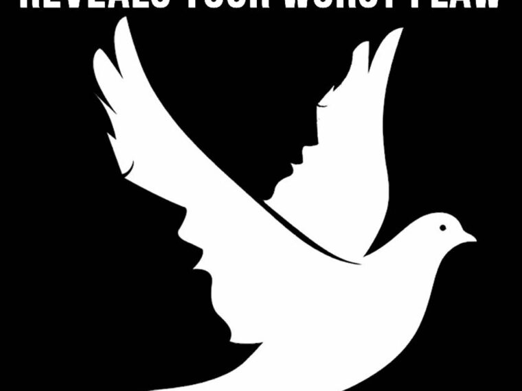 At first glance, the image appears simple: a white dove in mid-flight against a black background. But look again. Hidden within the wings and negative space is the profile of a human face.