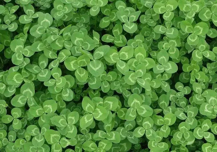Clover has a fresh, slightly glossy appearance. Its tiny, rounded leaves and delicate blooms give lawns a unique, lush aesthetic.