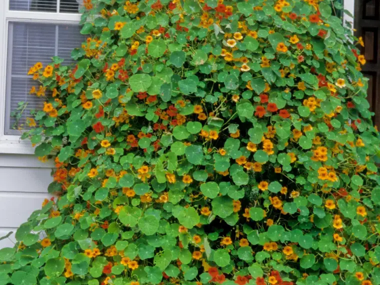 Few garden plants rival nasturtiums for pure visual impact. The leaves are a lush green, while the flowers bloom in brilliant jewel tones.